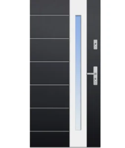 Wariant Juka 2 należy do subserii z szeroką, dekoracyjną poprzeczką na poziomie klamki, przeszkleniem powyżej i wypełnieniem litym poniżej.