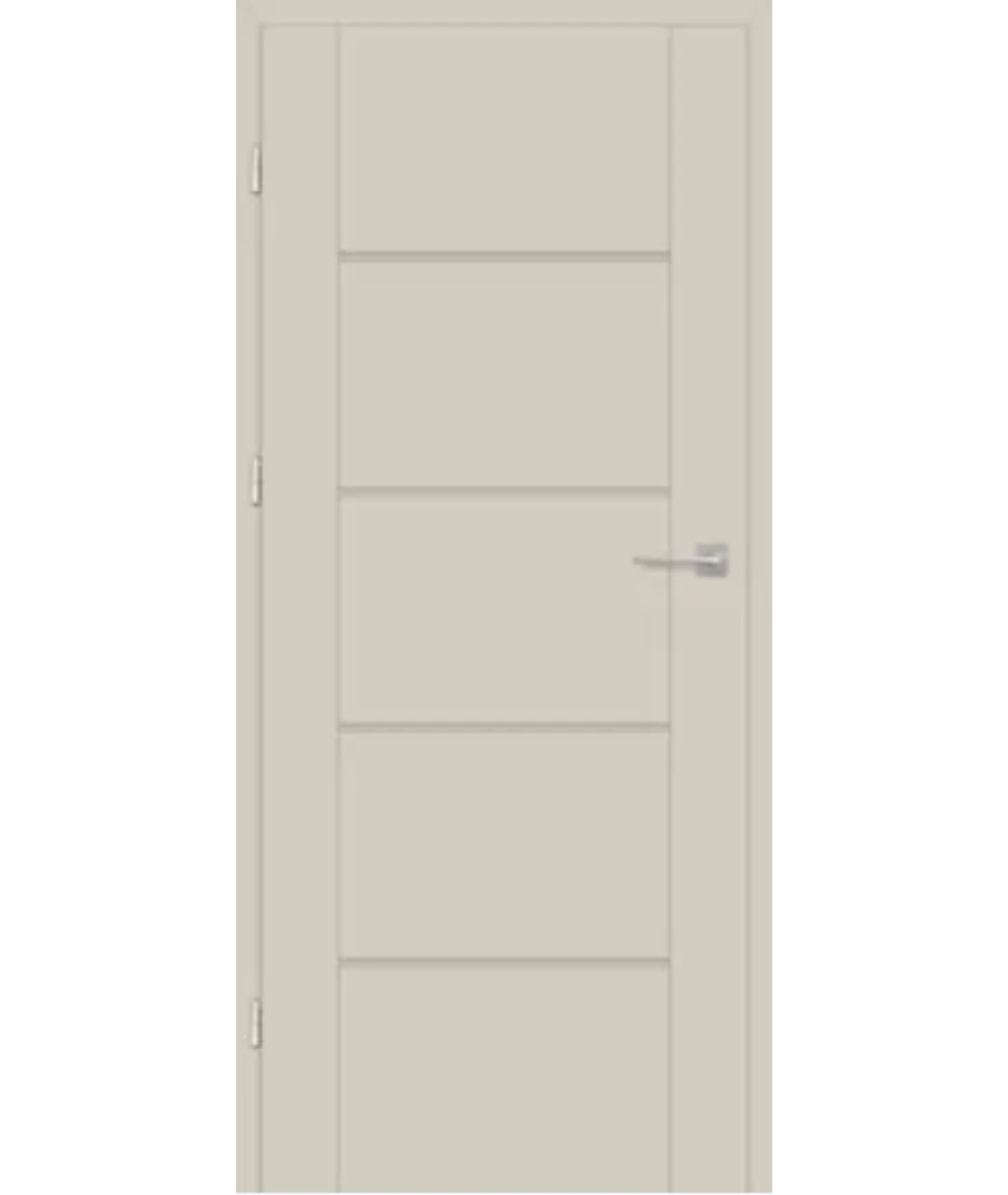 Wariant Laurencja 6 to model z litym wypełnieniem charakterystycznych szczelin. Zwłaszcza w przypadku wykończeń jasnych (zarówno jednobarwnych, jak i z dekorem drewnianym) wzbogaca skrzydło o delikatny światłocień. Znakomicie połączy się ze wszystkimi pozostałymi modelami z kolekcji – przeszklonymi.
